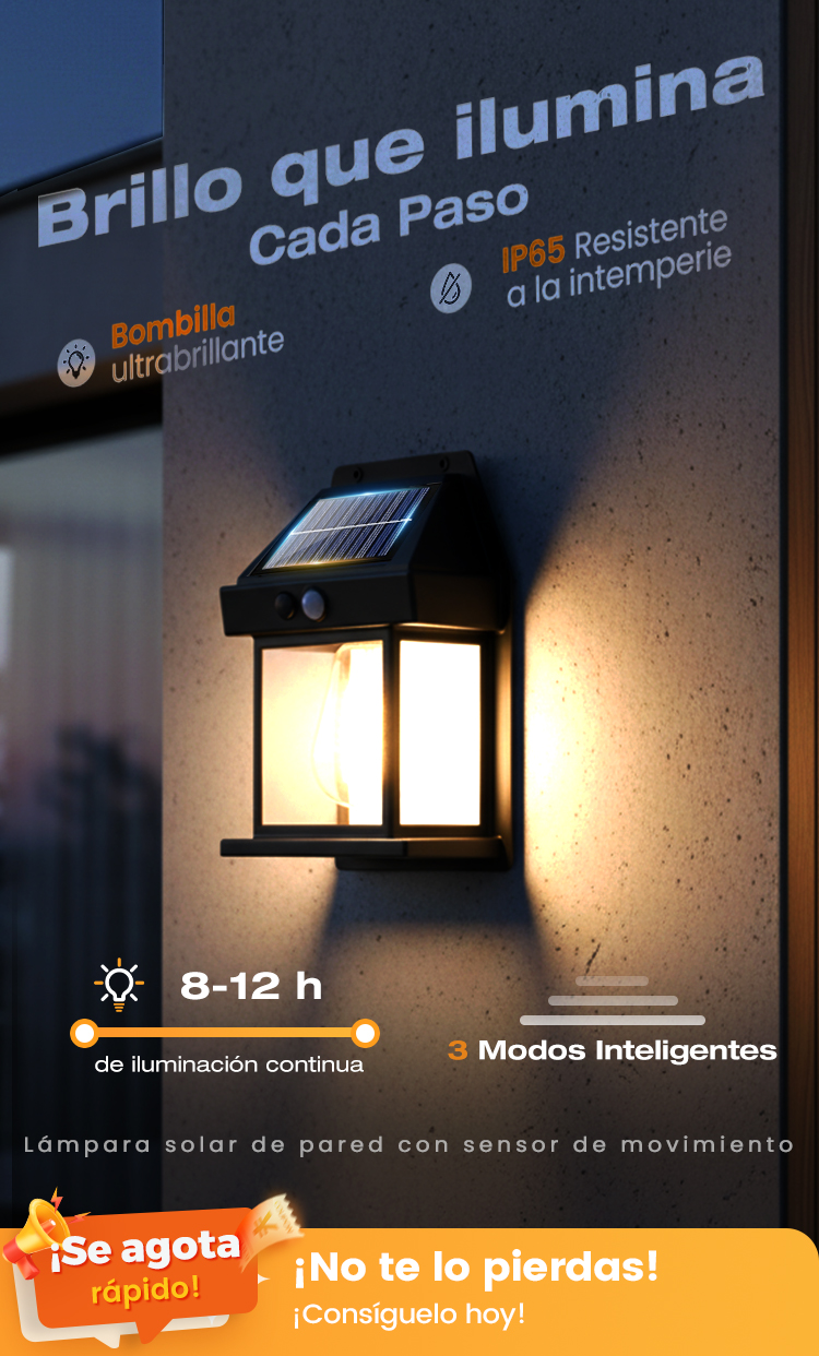 🎁Compre 2 y llévese 1 gratis⏳Lámpara de pared solar con sensor de movimiento y tungsteno