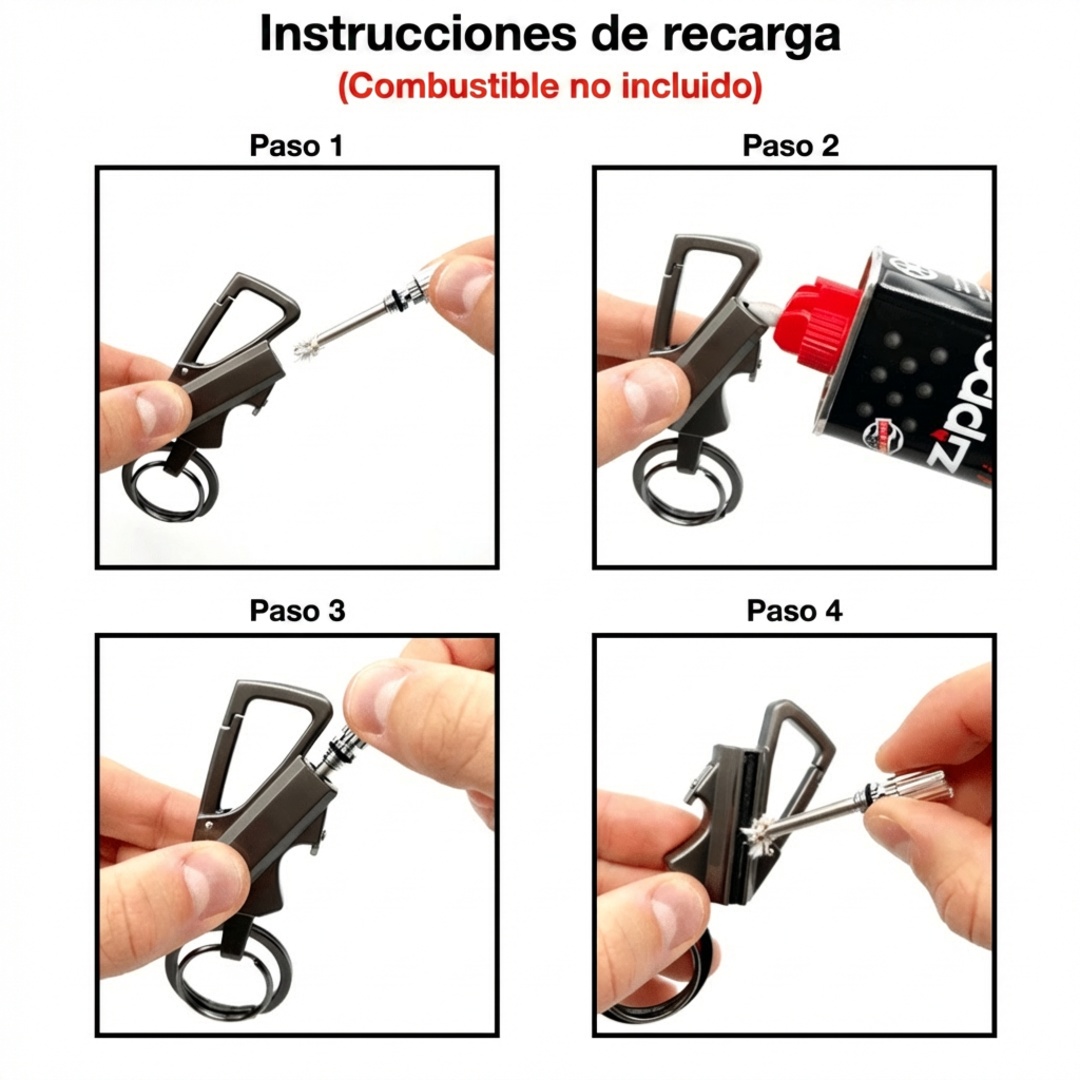 #1 - Asegúrate de que haya la cantidad adecuada y suficiente de líquido de encendedor dentro de la herramienta de inicio de fuego de pedernal.
